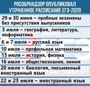 Федеральная служба по надзору в сфере образования и науки (Рособрнадзор) опубликовала уточненный план проведения экзаменационной кампании в 2020 году, сообщает Российская газета.