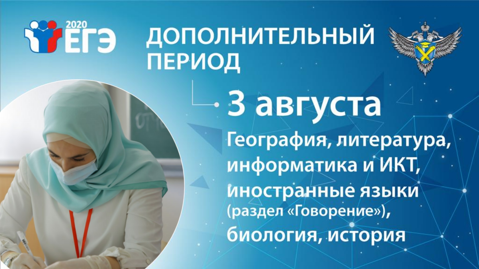 Дополнительный период ЕГЭ 2020 года стартует 3 августа. Экзамены пройдут в четыре дня и завершатся 8 августа.