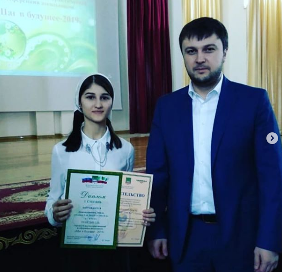 30.03.2019На базе МБОУ «Гимназия №1 им. А.-Х. Кадырова» торжественной обстановке чествовали победителей и призеров XIII городской научно-практической конференции школьников «Шаг в будущее – 2019». Джамалдинова Линда учащаяся 8 а класса заняла 1 место. Поздравляем Линду и её руководителя Душаеву Айну Владимировну учителя технологии с победой!!!